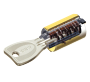 すべてのタンブラーが同時に揃わないと回転しないロッキングバーと複雑な形状のアンチピッキングタンブラーを採用。さらにシリンダー内に複数の高硬度部品を使用しているためドリル攻撃にも高い抵抗力があります。キーとの接触面が異なるメインタンブラーとサイドタンブラーの2WAY構造で、複製が非常に困難な安全性の高いキーです。