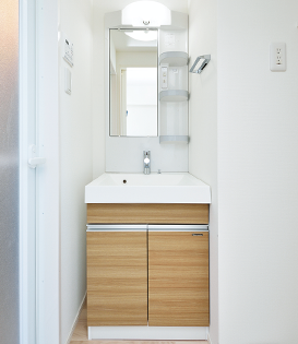 乱雑になりがちな小物類は鏡裏の収納スペースによりスッキリできます。