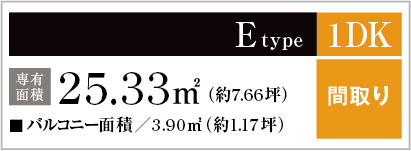 専有面積:25.33㎡(約7.66坪)バルコニー面積/3.90㎡(約1.17坪)