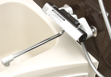 温度調節に優れたサーモスタット機能の混合水栓を採用しました。