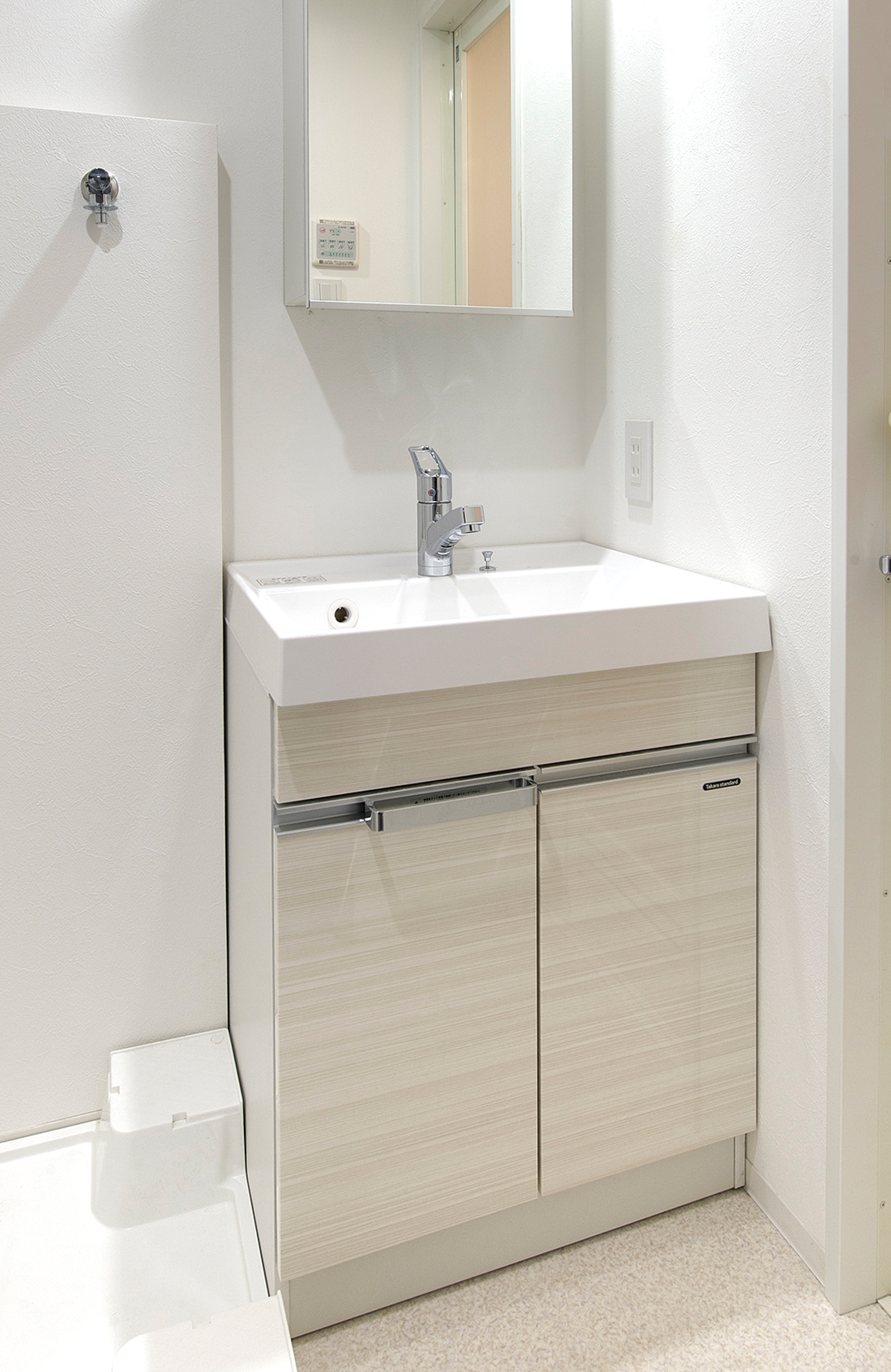 化粧品や整髪料などを収納できる鏡裏収納を装備しました。